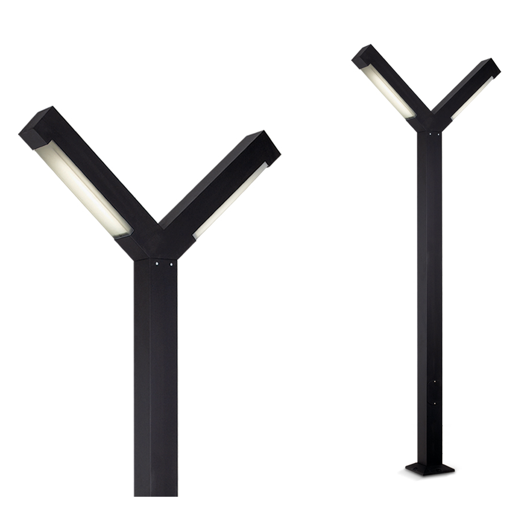 Farola aluminio, de 3,13 mt, c/cabezal doble a 60º, Ø 12,7 cm; p/ 2 lámparas led hasta 45W